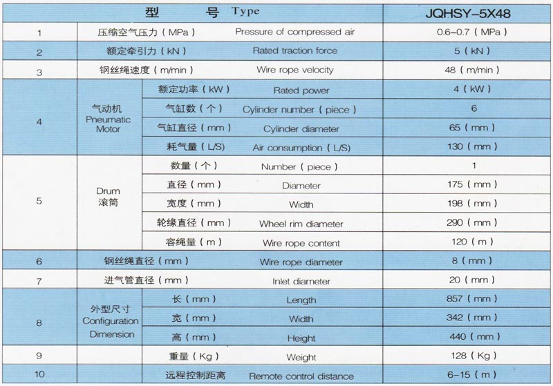 JQHSY-5X48 系列 远程控制气动绞车